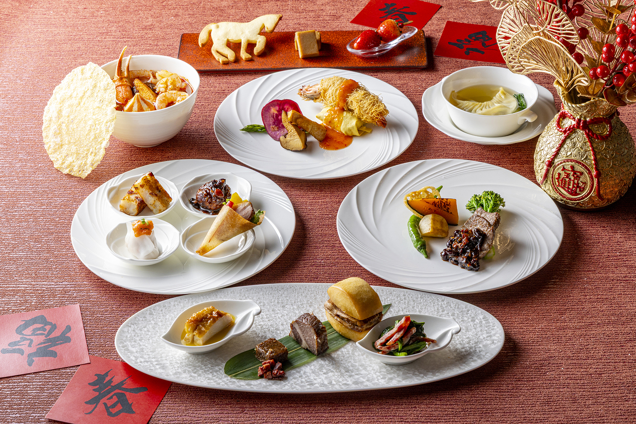 色とりどりの前菜を取り揃えたクリスマスオードブルからスタートするコースは、近江鴨 や信州黄金シャモ、黒部名水ポークなど厳選素材を使用。信州サーモンのカダイフ巻きや信州牛サーロインラム肉のXOチーズ焼きなどWメインを楽しめます。締めくくりには翡翠チャーハンに黄金イクラを添え、華やかなデザートで聖夜を彩る、贅沢な中華ランチを地上26階の絶景とともにお愉しみください。