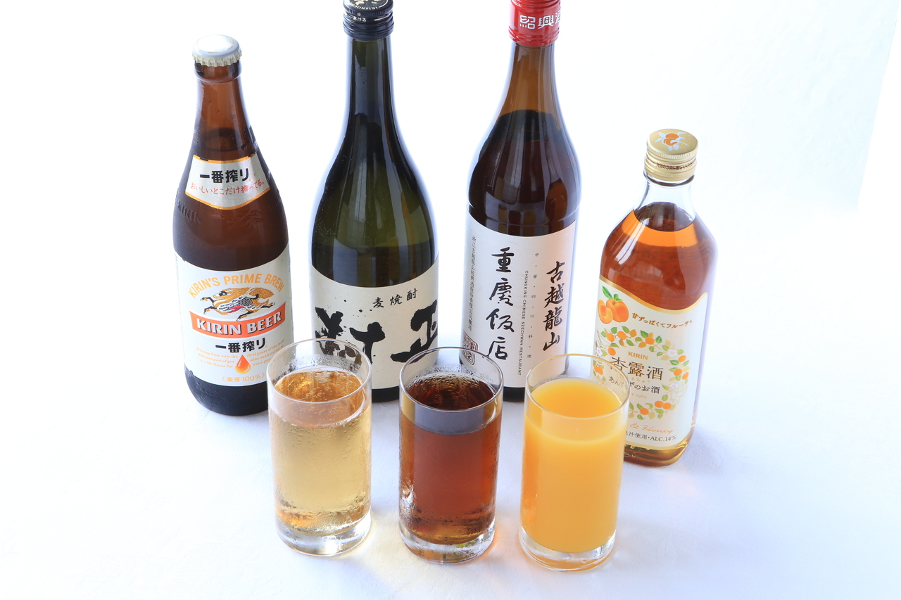 ビール・紹興酒・麦焼酎・ハイボール・杏露酒・烏龍茶・オレンジジュース