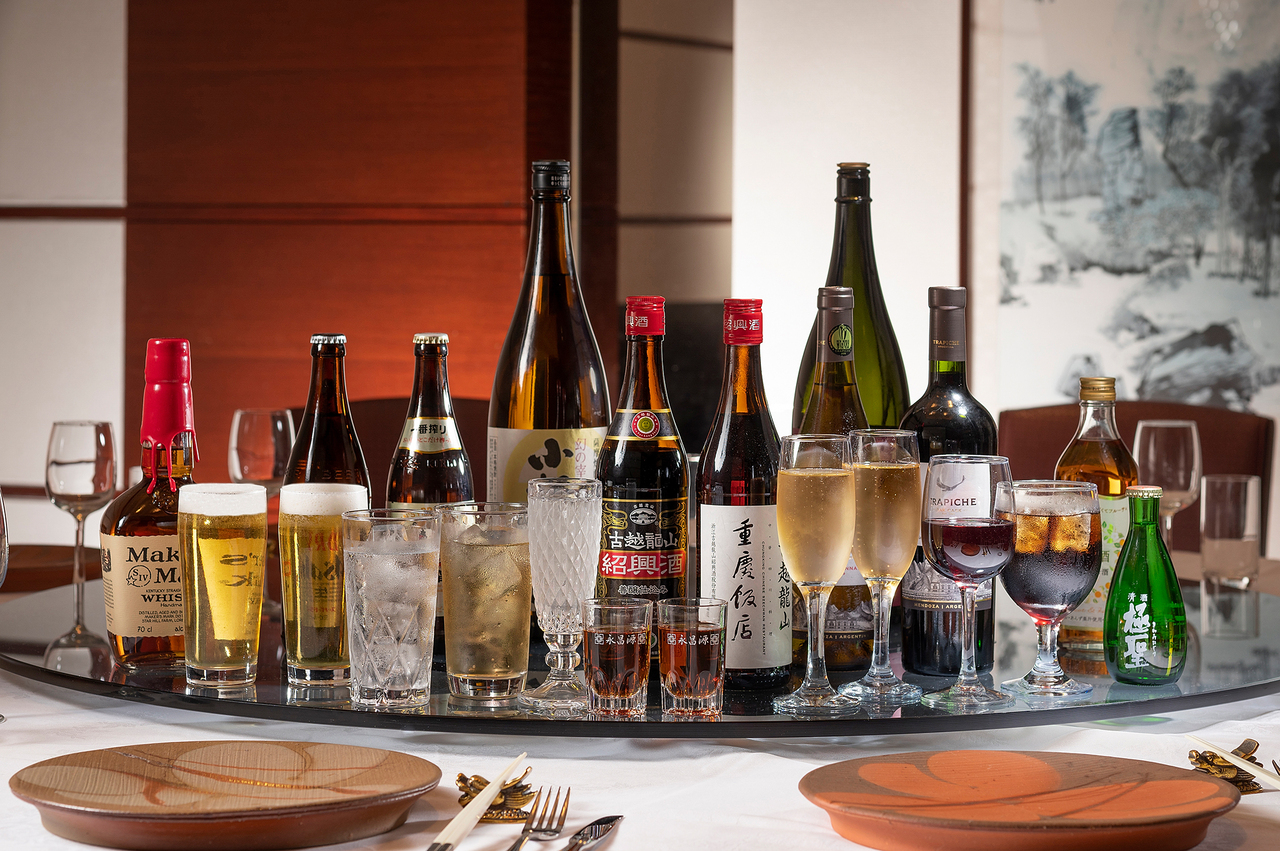 飲み放題のみのご予約は受けておりません。ランチタイムは7980円(翡翠)以上、ディナータイムは12000円(吉祥)以上のコースをご注文下さい。