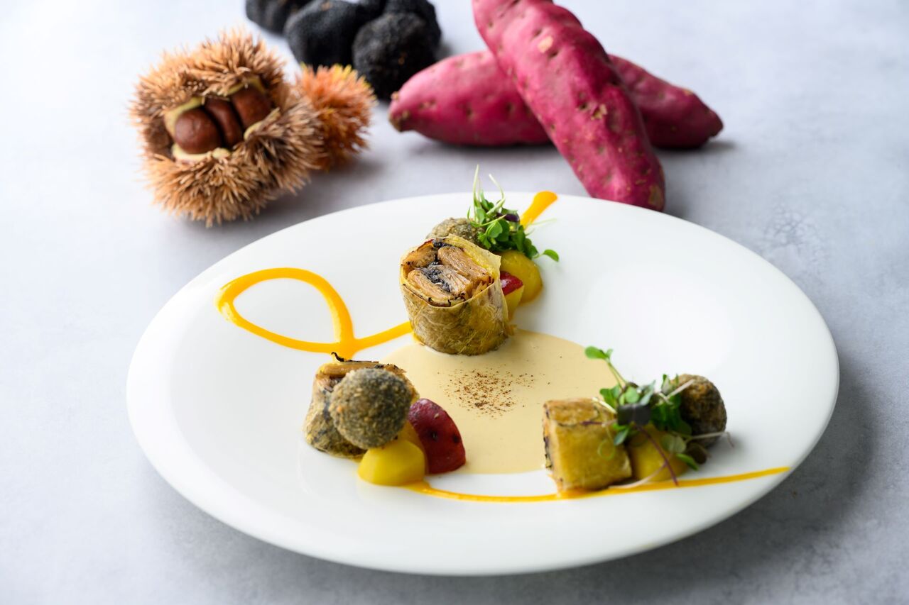 Questions for ポタジェール レコルト トリュフを巻き込んだライクチキンのバロティーヌ 栗と五郎島金時のフリカッセと15種の穀物の味わい