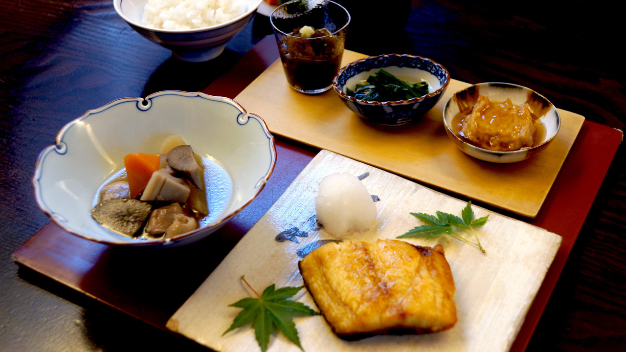 季節の移ろいを盛り込んだ「旬菜三種盛り」や小鉢が、お食事に華を添えます。