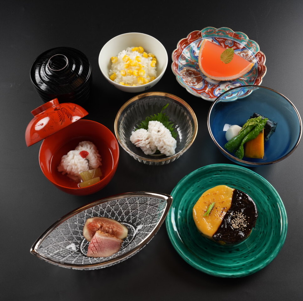 Our No.1 kaiseki course — late‑season hamo (pike conger), matsutake mushroom, kamasu (barracuda)