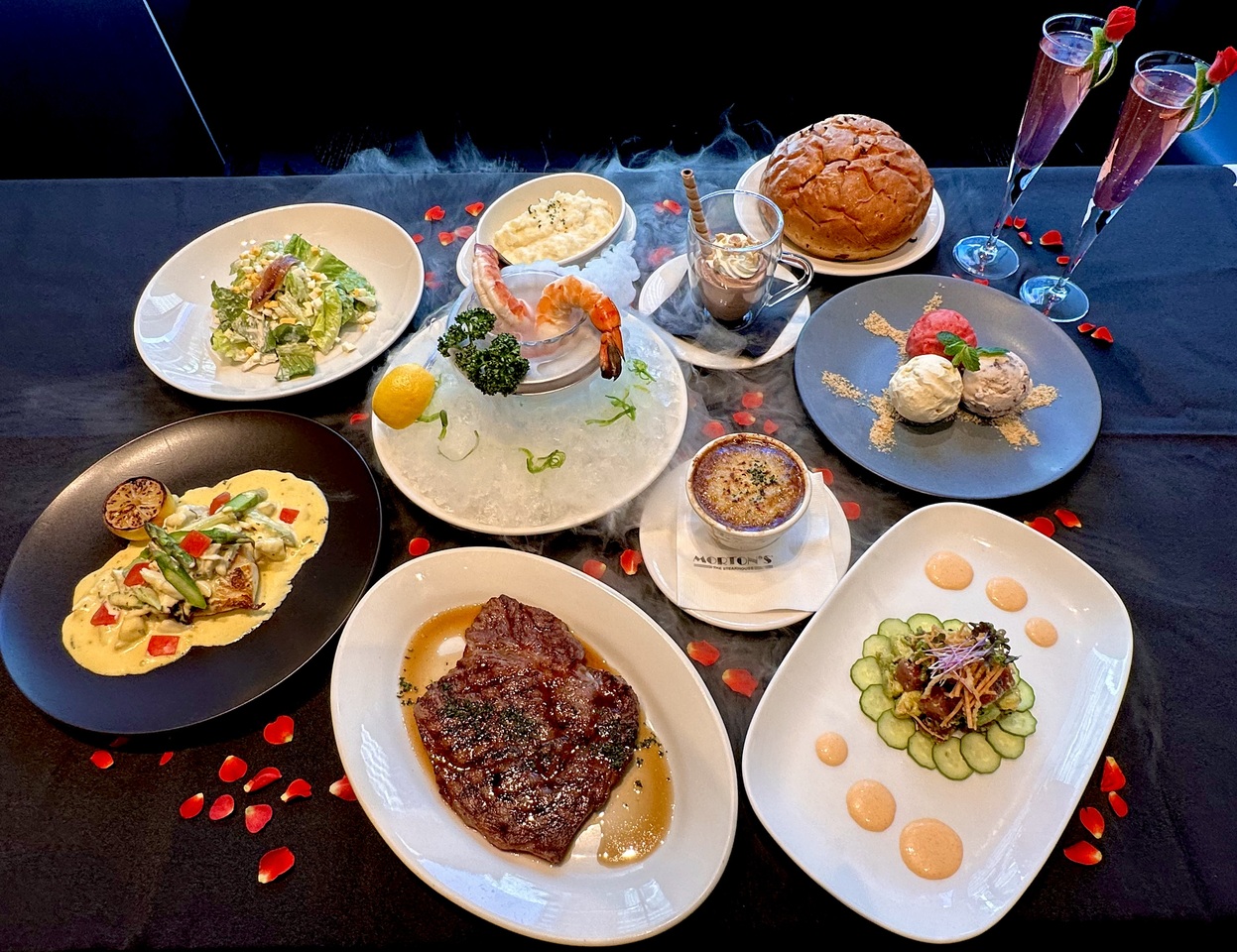 Questions for [Filet Mignon Course] Includes a champagne toast! A total of 6 dishes featuring Morton's classics and tender filet mignon