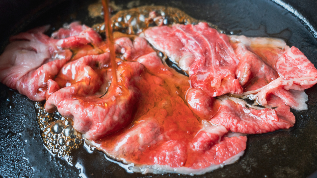 Sukiyaki: Kumamoto Amakusa Kuroge Wagyu shoulder loin → Nara Yamato Beef ribeye (¥1,980 extra per slice)