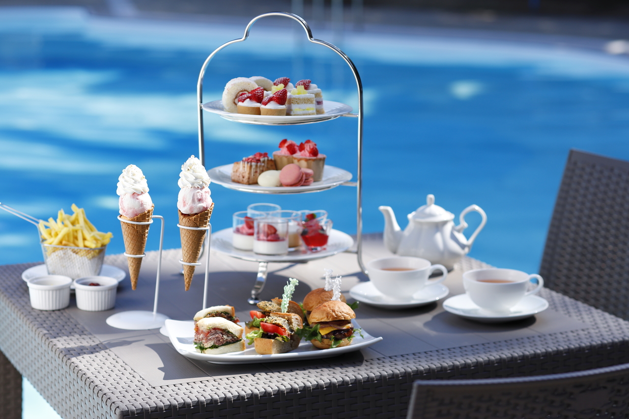 毎年人気のプールサイドで愉しむアフタヌーンティーが今年も開催。