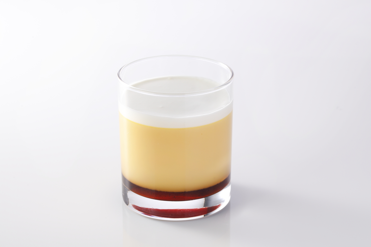 八丈島産の大自然の中で育てられた乳牛から搾られるジャージー牛乳を使用した口どけ滑らかなマロン風味のプリンと濃厚なカラメル、さらに、ようかんジュレと黄栗の甘露煮をトッピングしました。