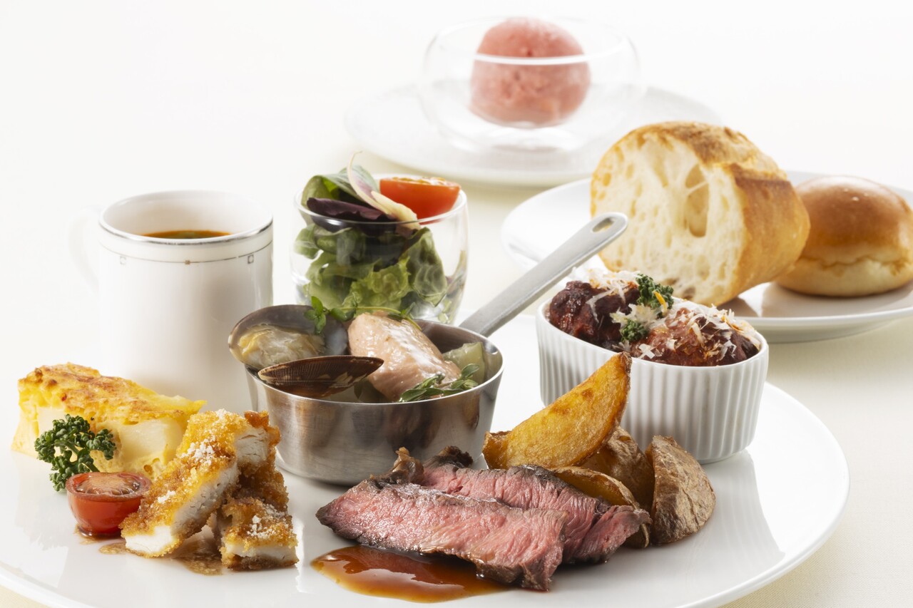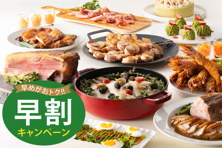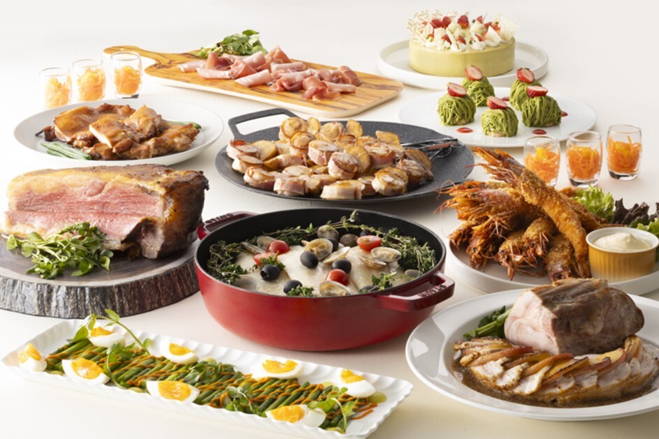 オードヴルからメイン料理、サラダ、デザートまで30種類以上の料理がお愉しみいただけるバイキングです。人気のライブクッキングもお楽しみください!