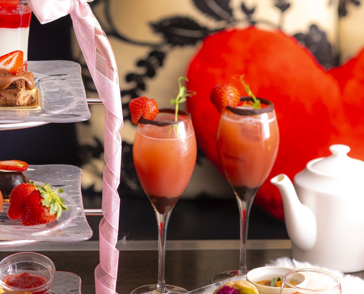 いちごとチョコレートのやさしい甘さにピーチジュースを加え、まろやかに仕上げました。ハートのいちごを添えて、特別なひとときを。