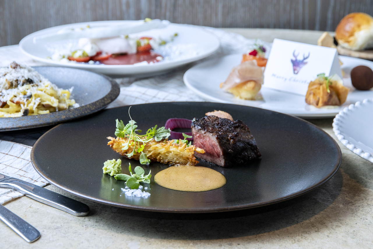 天王洲アイル運河に面する大人の雰囲気が漂う「RIDE」が贈る薪火の2025年Xmasランチショートコースプラン。