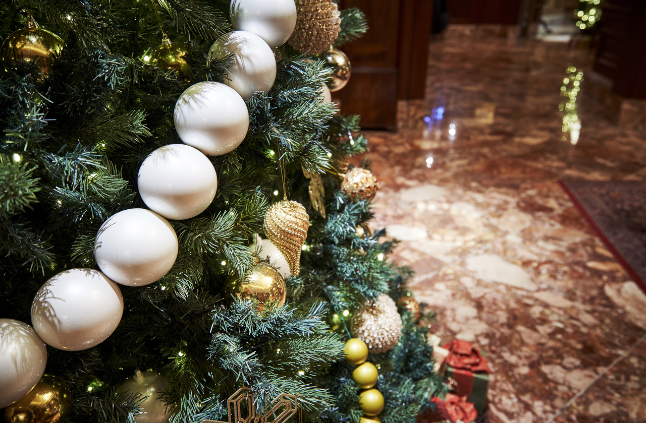 Richly flavored sweets using chocolate, caramel, and nougat feature exciting Christmas motifs and colors. Special savories are also prepared, including bisque and foie gras mousse. An elegant moment can be spent in a space shimmering with the lights of the tree.