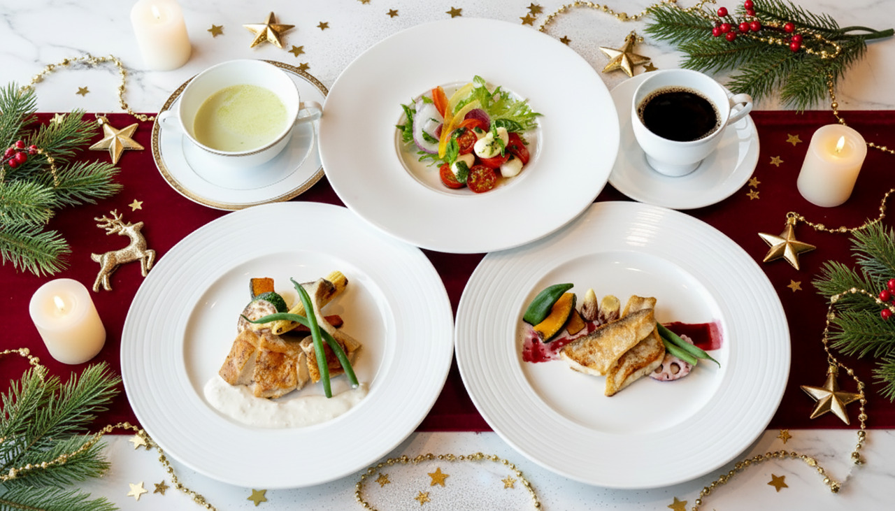 旬の食材を楽しめるランチコースです。メイン料理を、肉または魚からお選びいただけます。