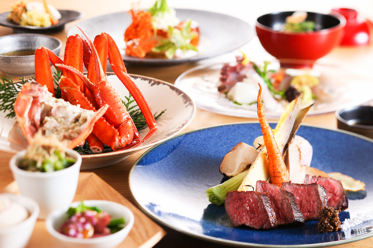 Enjoy the quintessential tastes of winter in Tajima with this Japanese-style course dinner featuring approximately one Matsuba crab served in a variety of styles such as sushi, soup, sashimi and grilled crab prepared in our live kitchen.