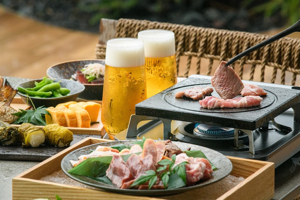 We invite you to enjoy a terrace barbecue featuring Satsuma’s three celebrated “black meats.”