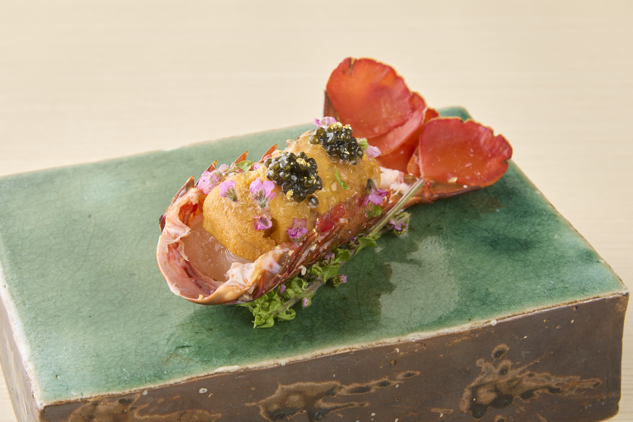 This is a course of dishes and nigiri sushi made with high-quality ingredients.