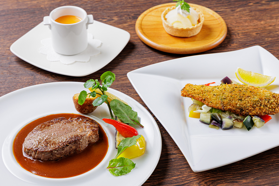 「本日の魚料理&牛フィレ肉のステーキ」のWメイン料理と