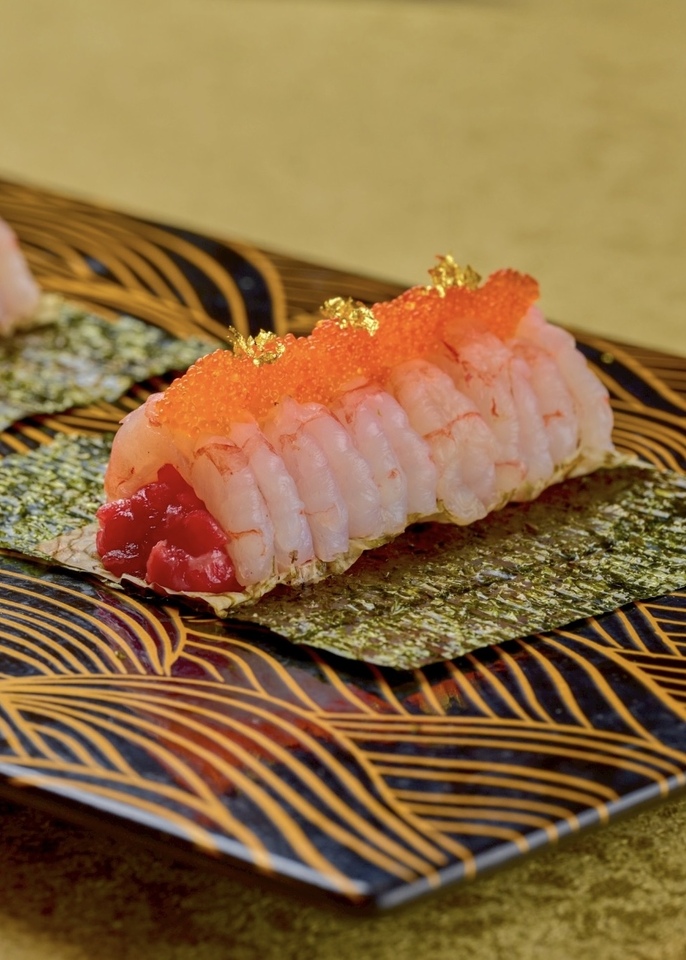 「和牛と甘エビのユッケドッグ」から始まる、期待を裏切らない美食の序章。濃厚な和牛と甘エビが溶け合う傑作をご堪能ください。