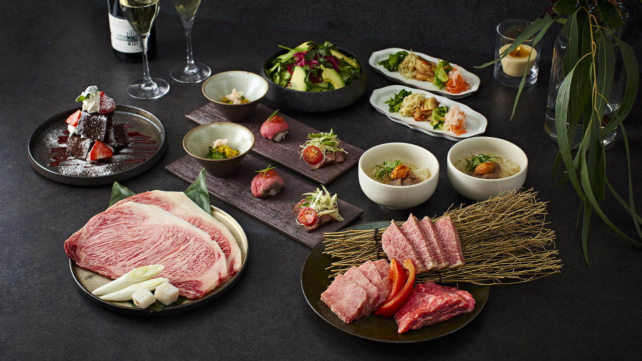Yakiniku Yamawarau in Omotesando presents a Christmas Wagyu beef course perfect for a special evening. Start the course with a toast of sparkling wine! Enjoy to your heart's content a variety of luxurious meats, including beef tongue, premium loin, kalbi, and Wagyu top sirloin steak, available only at Christmas.
