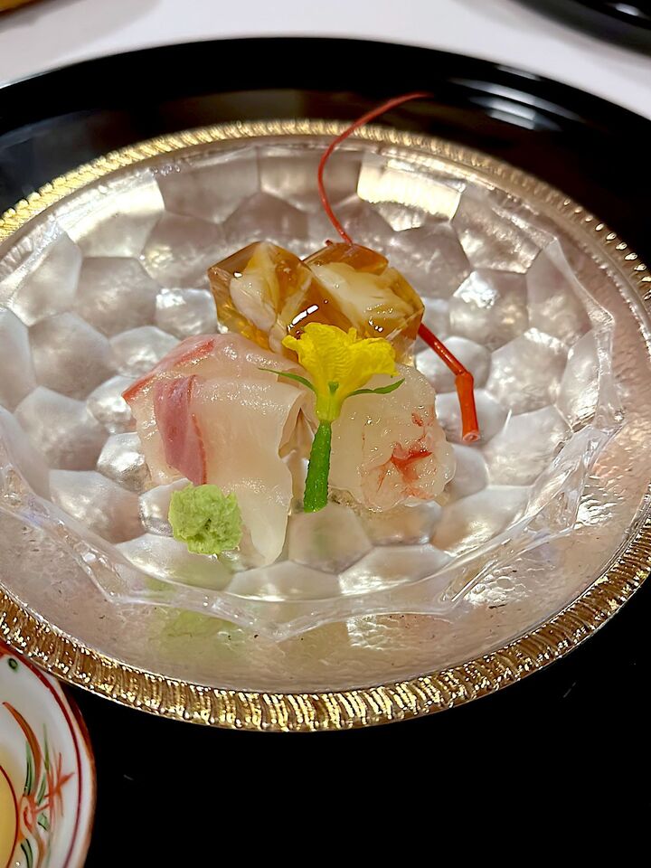 - Sashimi: Two types of yuba from Okukuji, Kokaku tomato cold bean paste