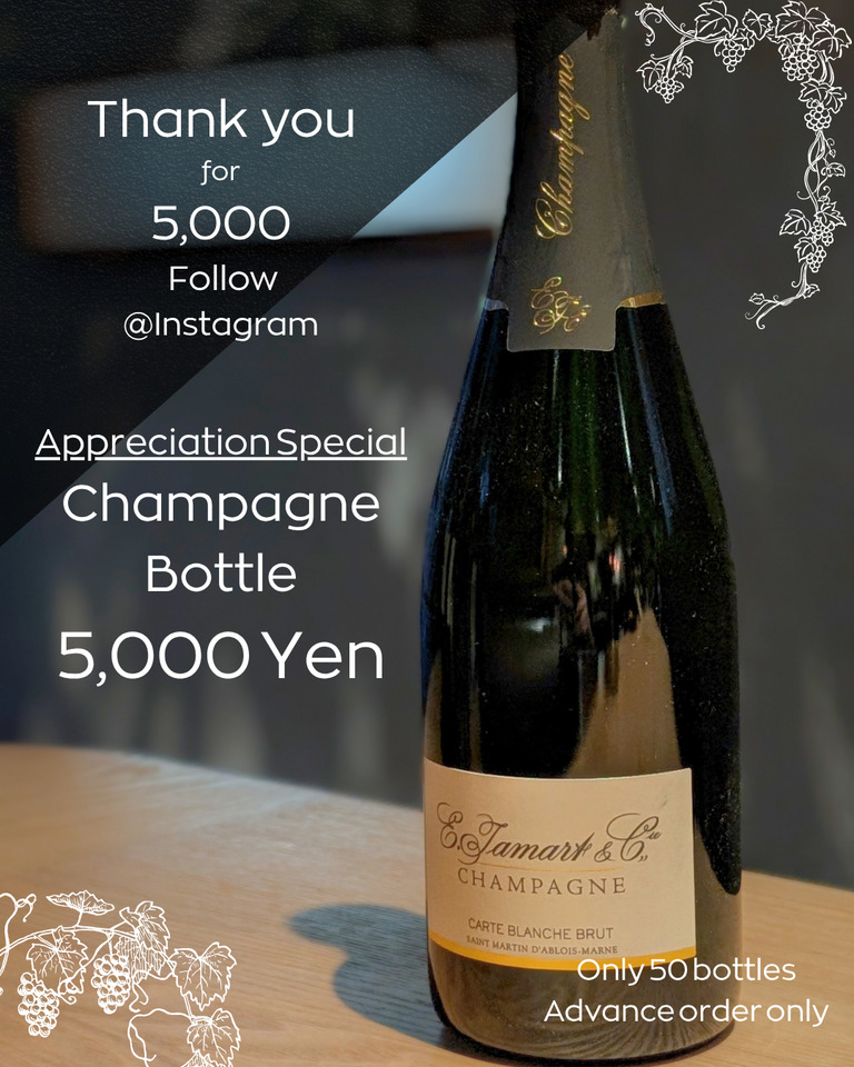 To celebrate Yosga reaching 5,000 followers on Instagram, we're offering a bottle of champagne for ¥5,000!