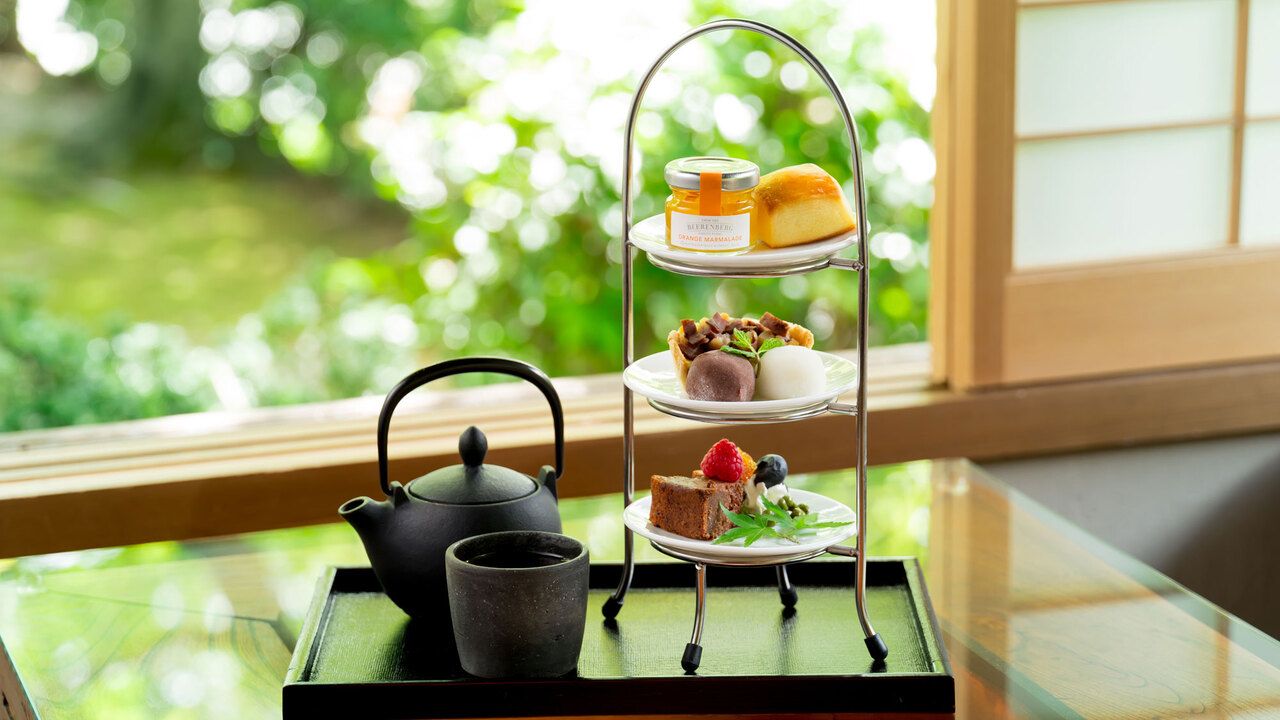 This afternoon tea set allows you to enjoy delightful sweets and savory dishes while admiring the captivating scenery of Arashiyama, accompanied by a serving of Suiran’s original matcha.