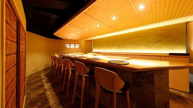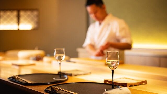 確かな目利きで厳選した素材を使った職人技が光る握りとつまみのコースをご堪能ください。 毎月変わる料理に合わせた日本酒や白ワインのペアリングもご好評いただいております。 匠の技を目の前で愉しめる8席のカウンターは、記憶に残る上質なひとときを演出いたします。 デートや接待など、特別な日にも最適です。