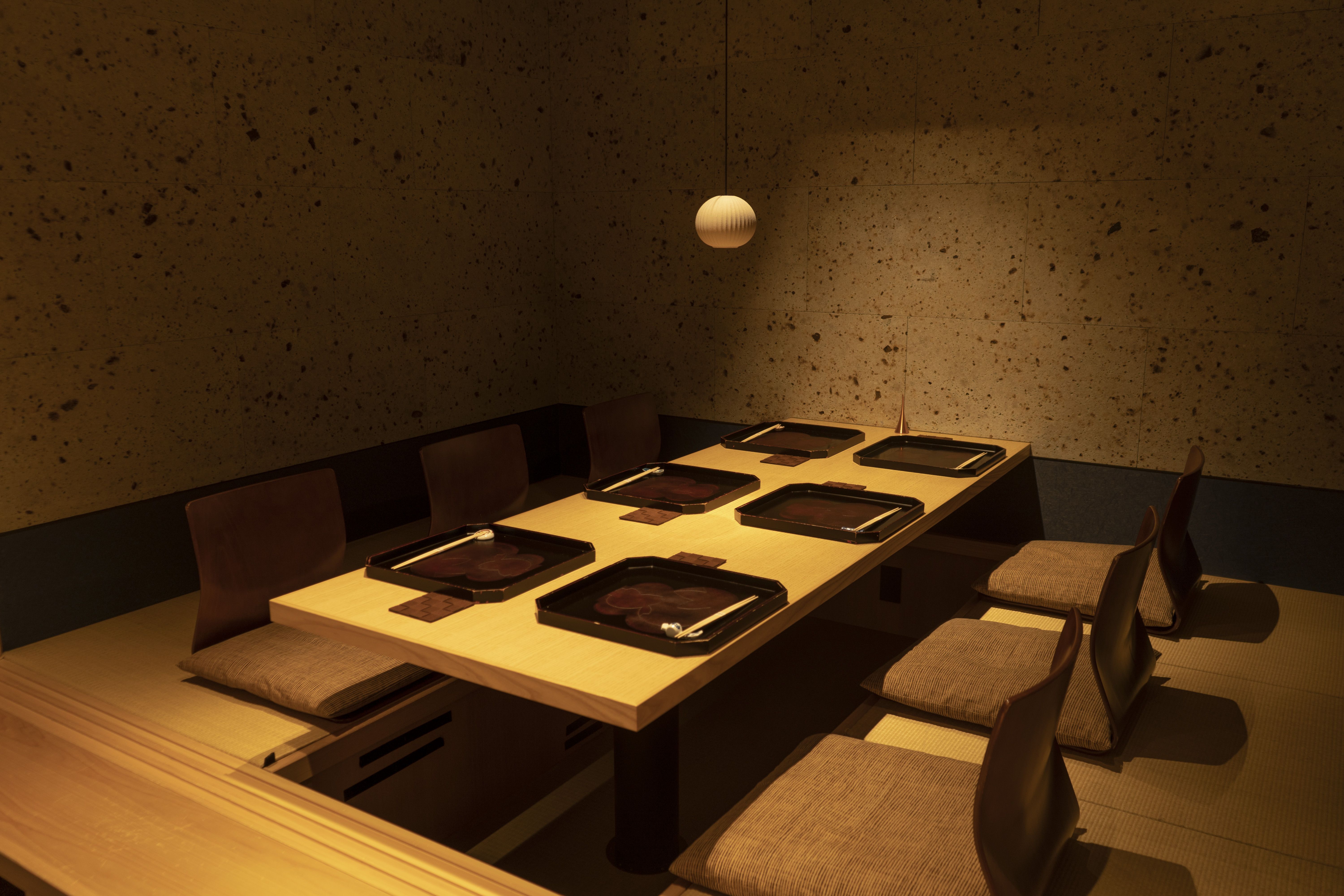 店名の入った白い暖簾をくぐれば、和モダンで上質な空間に出合えます。客席は、L字型のカウンター席、テーブル席のほか、小上がり式の個室もご用意しておりますので、多様なシーンでご利用ください。当店では、宮崎県産の地鶏である神楽とりを多様な調理法で提供しております。鮮度の良い鶏ならではの旨味をご堪能いただけるお刺身やたたきのほか、鶏スープと2種の出汁を組み合わせたトリプルスープを用いた匠ラーメンなどの逸品もございます。
