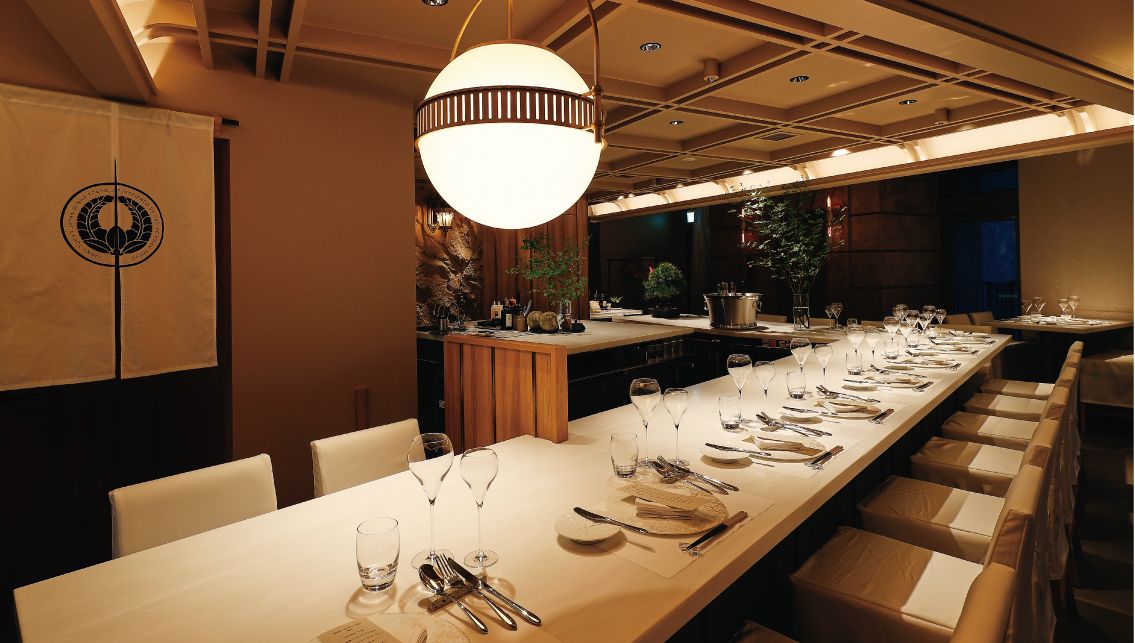 We express our cuisine using French techniques based on the structure of kaiseki (traditional Japanese multi-course meal). We use carefully selected seasonal ingredients and serve freshly prepared dishes right in front of you. Enjoy our genre-blending dishes, crafted from fresh ingredients and infused with the aroma of charcoal grilling and French culinary expertise.