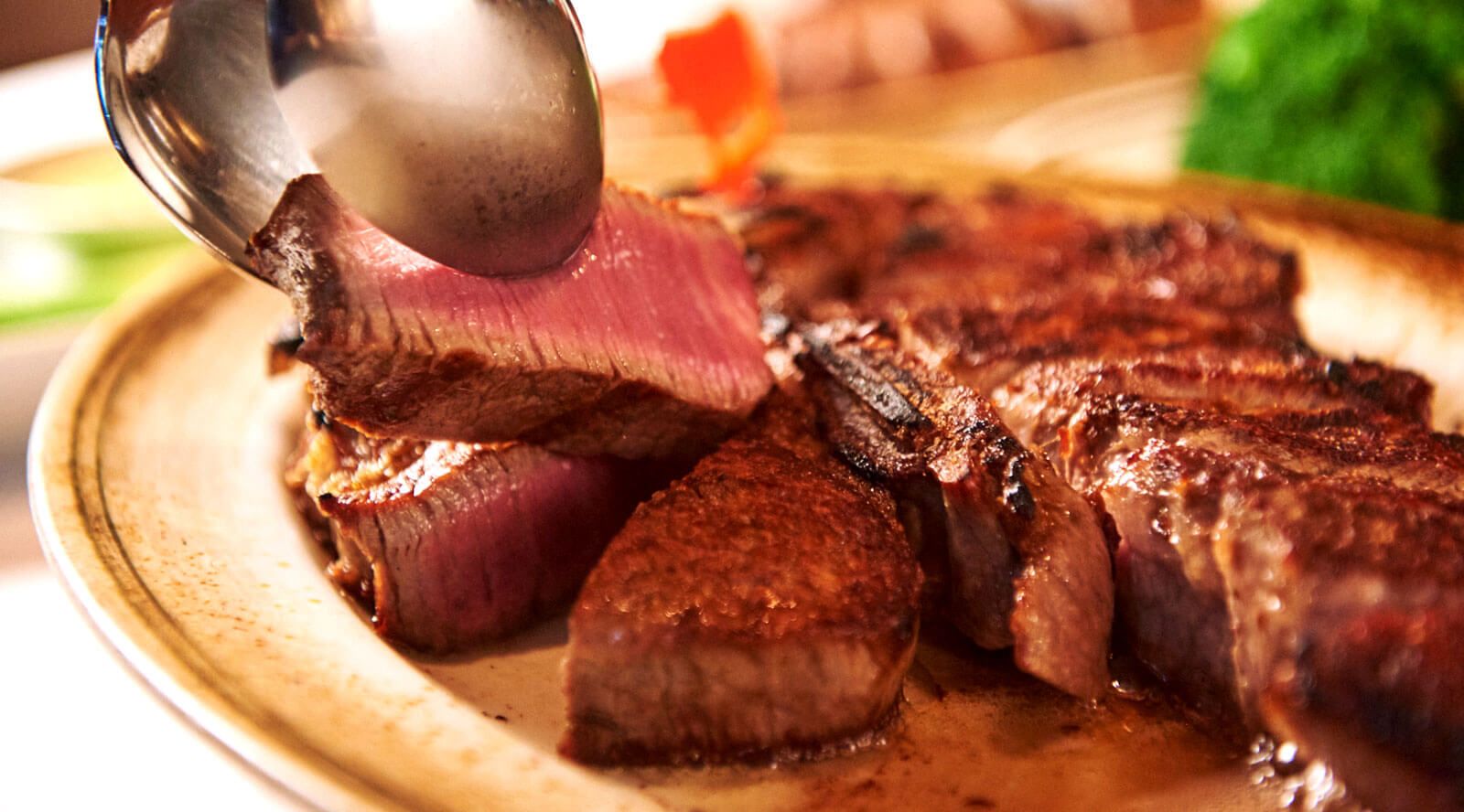 APPETIZER CAESAR SALAD with SIZZLING BACON SOUP SOUP OF THE DAY STEAK USDA PRIME DRY AGED T-BONE STEAK SIDES MASHED POTATOES AND CREAMED SPINACH DESSERT TODAY’S DESSERT COFFEE or TEA