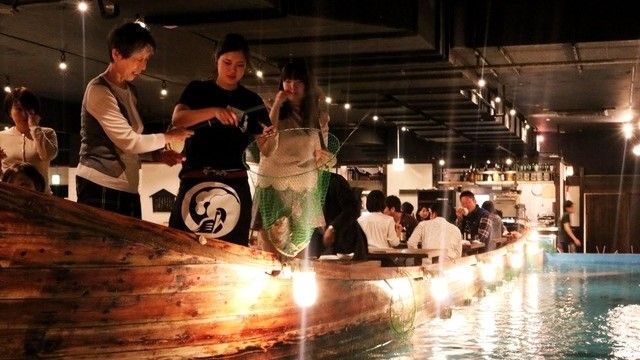 The concept of the restaurant is a fusion of entertainment and restaurants. The boat seats are surrounded by cages, so you can catch the swimming fish yourself and enjoy your favorite cooking method. They have prepared various dishes such as sashimi, sushi, and tempura so that you can enjoy seasonal fish. They also have a sushi-making experience for children only at lunchtime.