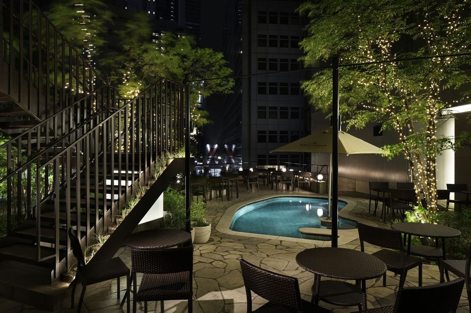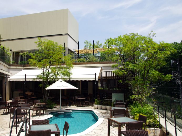 A resort experience at a poolside terrace cafe in Shibuya