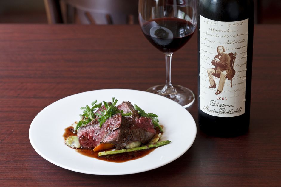 A 4-minute walk from Suehirocho Station of Ginza Line, you will see a storefront full of greenery. Inside, there is a stairwell, and the interior resembles the Montmantle of Paris. At the A Table, you can enjoy juicy meat such as charcoal-grilled beef with a variety of wines from Europe. Meat is baked every day at 7 pm, so it is recommended that you visit around that time.