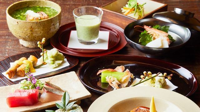 隠れ家風のエントランスに足を踏み入れると、そこは土壁と木でできたシックで落ち着いた空間。全室茶室風の個室には、琉球畳、やちむんの花器などを設置し、非日常のひと時を過ごせます。メニューは医食同源をテーマにした身体にやさしい料理で、沖縄産の牛肉や魚介類、島野菜を使用した懐石料理をご用意。沖縄郷土料理である豚肉のラフテーも人気ですので、琉球泡盛と一緒にお楽しみください。
