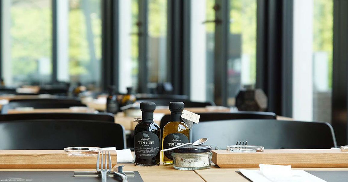 Wood-based, simple yet modern interior with a warm atmosphere, modeled after our sister restaurant in Paris. Other than our tables and bar counter, you can also enjoy our meal among greenery in our terrace. Our dishes too are prepared with selected truffles, just like in Paris, cooked and garnished by world class first rate chefs, drawing out the truffles' taste and aroma to the fullest.