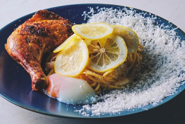 - Choice of Pasta Charcoal-Grilled Winter Yellowtail Teriyaki and Daikon Radish Aglio Olio with Yuzu Fragrance Charcoal-Grilled Root Vegetables and Chami Pork Braised in Red Wine and Miso Sauce with Black Shichimi Spice Charcoal-Grilled Chicken Lemon Carbonara (+¥500) Limited-Quantity Charcoal-Grilled 100% Beef Hamburger with Rigatoni (+¥500) Charcoal-Grilled Japanese Black Beef Roast Beef Bolognese (+¥1200)