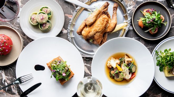 As soon as you step foot inside, you'll see chefs cooking nearby in our open kitchen. In addition to counter seats and tables surrounding the kitchen, we also provide terrace seats. Centered on classical French cuisine, we also offer high grade items like foie gras and truffles as easy to eat tapas-size dishes. Please make sure to try our luxury baked pies, with fillings that change each day.