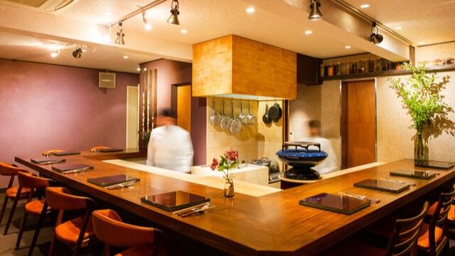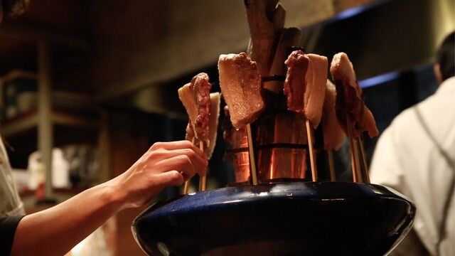 京都祇園の中にある、隠れ家的な空間。木の温かみを感じられるカウンターの目の前で、ジビエ素材を使った調理を行います。シェフの包丁捌きや、巨大な七輪で炭火焼きが出来上がっていく様子をご覧いただけます。メニューに使用するのは、鴨や鹿、熊など、京都美山で獲れた多種多様なジビエ。いずれも新鮮な状態のまま仕入れるため、本来の美味しさをご堪能いただけます。シャンパンを始めとするアルコールも豊富に取り揃えていますので、ジビエとの調和もお楽しみください。