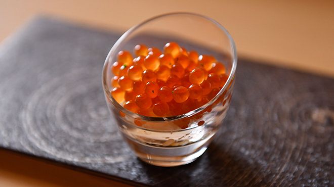 It is a luxurious chef's choice course at night that uses seasonal ingredients procured from Toyosu Market and meticulous Edomae work. This is a special course unique to Ginza Sushika Hanare, where you can enjoy seasonal a la carte dishes between nigiri sushi.