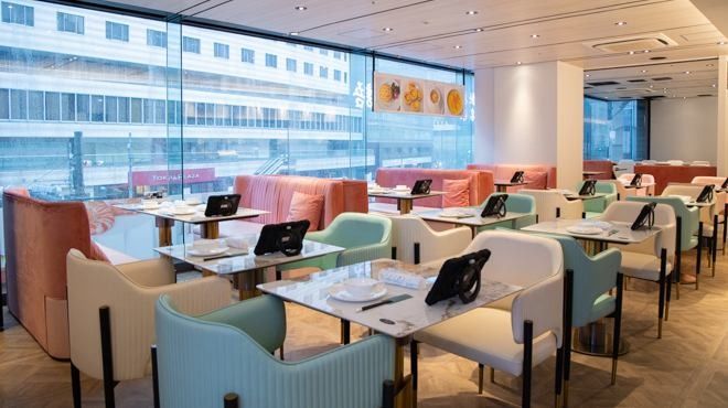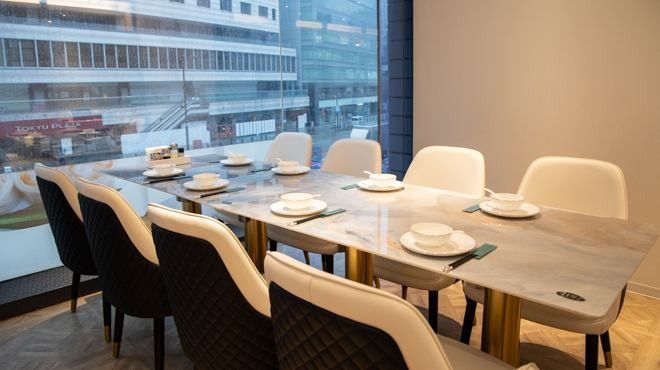Assortment of four types of appetizers Fried shrimp with garlic Stir-fried beef with scorched rice Hong Kong-style roast duck (all-you-can-eat) Seasonal hot dish Hong Kong-style fried noodles Dim sum Dessert