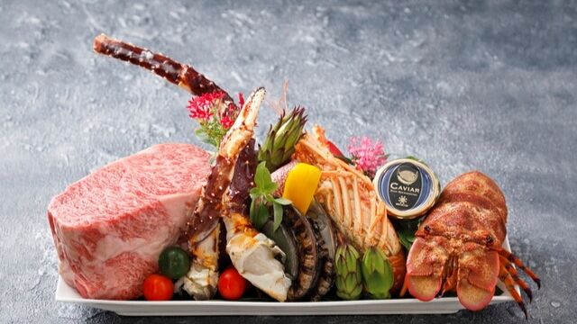 リゾート内最大席数の鉄板焼き店舗です。各エリアに配置された専属シェフが、ジャンルを超えた高級食材をクリエーション。地元宮古島の黒毛和牛サーロインやフィレ、琉球野菜の鉄板焼きを、ご家族皆様でお楽しみください。魚料理をお好みのお客様には、活鮑の鉄板焼きや沖縄県産セミ海老の鉄板焼きをご用意しています。