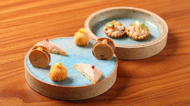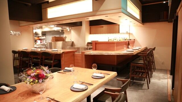 古民家風の入口から店内に足を踏み入れると、シンプルで温かみのある落ち着いた空間が待ち受けています。桜の一枚板を使ったカウンターは、木の温もりでゆったりとしたひと時を過ごせます。メニューは炭焼きや薪焼きで作る焼鳥をメインとしておりますが、これらの料理にフランス料理の技法を使っている為、和洋折衷の味が楽しめます。比内地鶏を主に厳選した国産地鶏やフランス産の仔鳩なども使用していますので、五感で感じながら料理をご堪能下さい。
