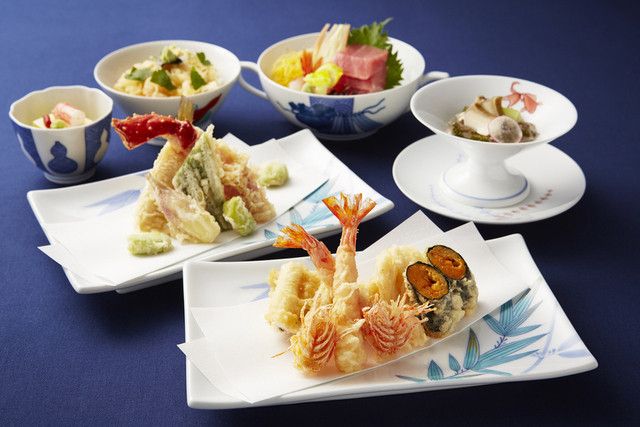 Located on the 7th floor of the Keio Plaza Hotel, our calm interior blends Japanese and Western styles, using gold tones to create a brilliant atmosphere. We offer both a chic counter and cozy tables that can easily be used for group meetings. Both are perfect for enjoying our chef's masterfully fried tempura. You can enjoy seasonal wild vegetables, seafood, and various novel ingredients.