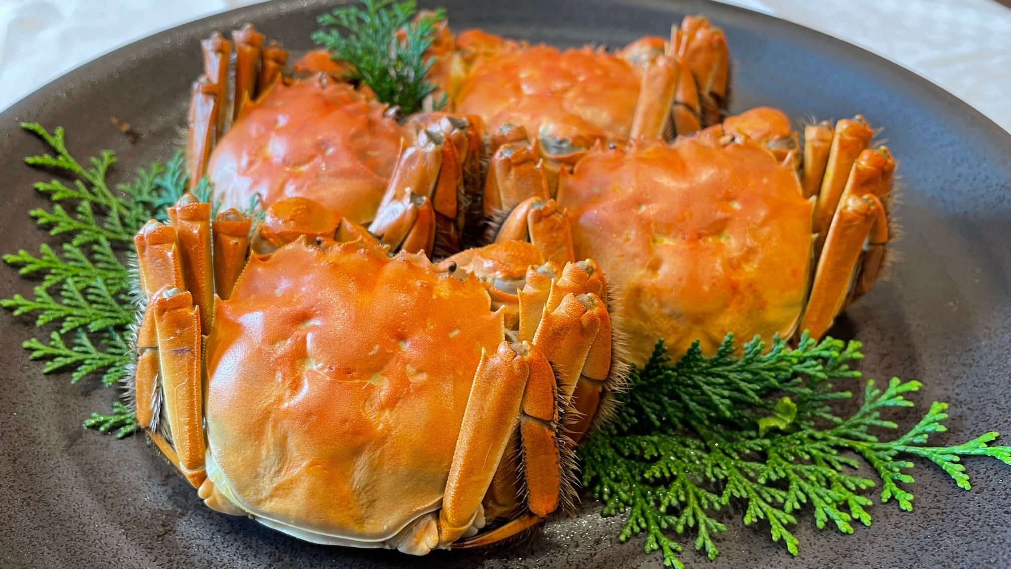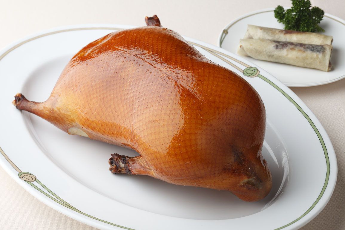 Appetizer Braised shark's fin and Lily bulb with soy sauce in a pot Stir fried ark shell with Kujyo green onion Beijing roasted duck Stir-fried beef and bamboo shoots with Yuzu kosho flavor Today's Stir-fried Chinese greens Crab meat and Bottarga,mountain vegetables with Fried Rice Dessert