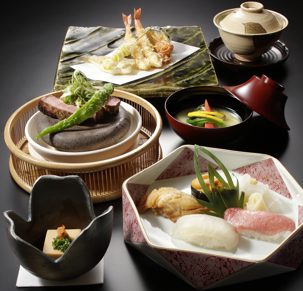 春爛漫の季節に合わせ、和食の醍醐味である「寿司」「天ぷら」「和牛会席」を中心とした期間限定メニューをご用意いたします。 季節の前菜やお椀もお愉しみいただける内容をご用意いたしました。