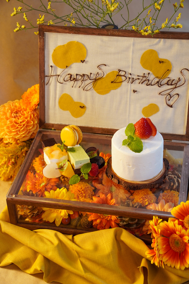 Preguntas acerca de 乾杯酒付き!アニバーサリーディナーコース!「オレンジのガーベラと紅葉」を敷き詰めたメッセージ付きケーキボックスに炎のカルボナーラ、牛フィレ肉のロッシーニにラクレットチーズをかける贅沢な全5品のディナーコース!(11月1日~11月30日)
