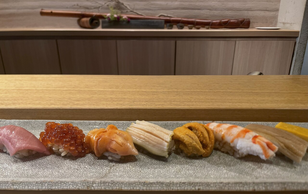 Nueve piezas de nigiri sushi