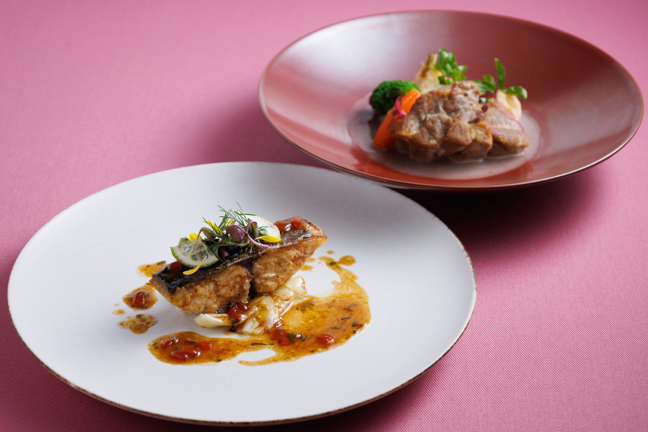 R restaurant & bar offers a dinner course. You can choose your main dish from four dishes. Enjoy a special moment with the fantastic illuminated Tokyo Skytree(R) and the night view spreading out below.