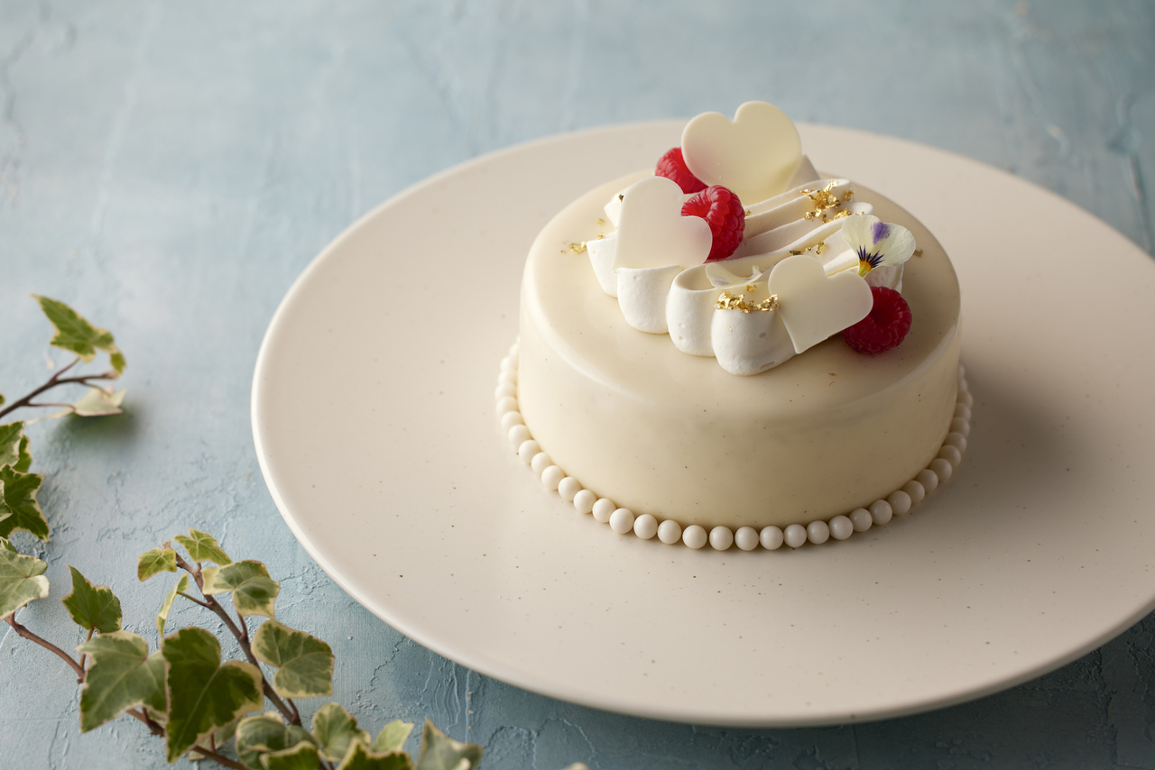 The surface is coated in white chocolate, giving it a soft white color. The mellowness of the white chocolate and the tartness of the berries create a flavor that is memorable, along with a beautiful cross-section.