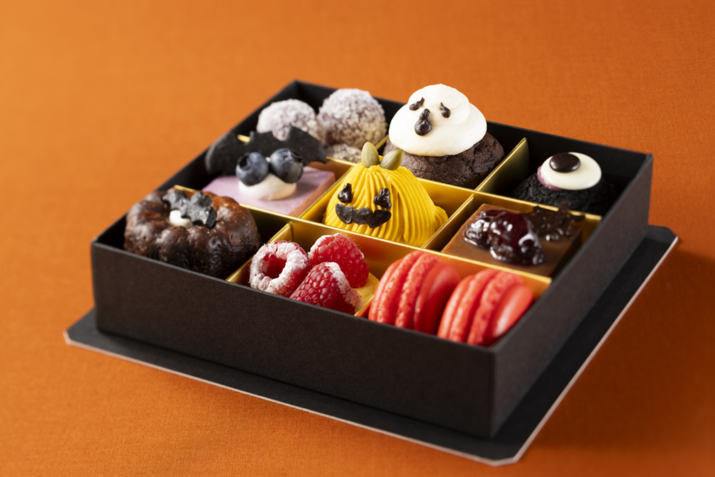ハロウィンをモチーフにしたスイーツを紅茶付きの期間限定スイーツBOXとなっております。