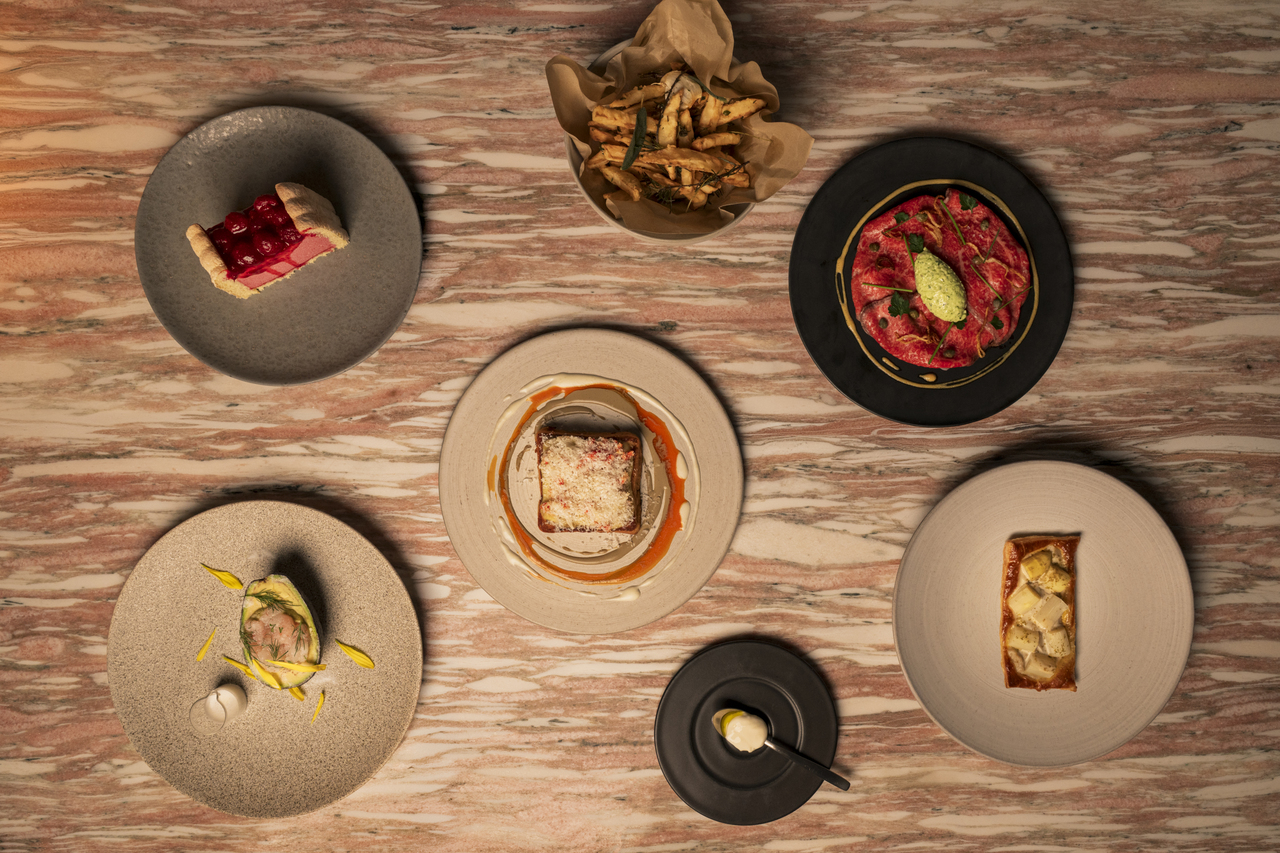 Enjoy a five-course meal including two appetizers, a double main course of fish and meat, and dessert.