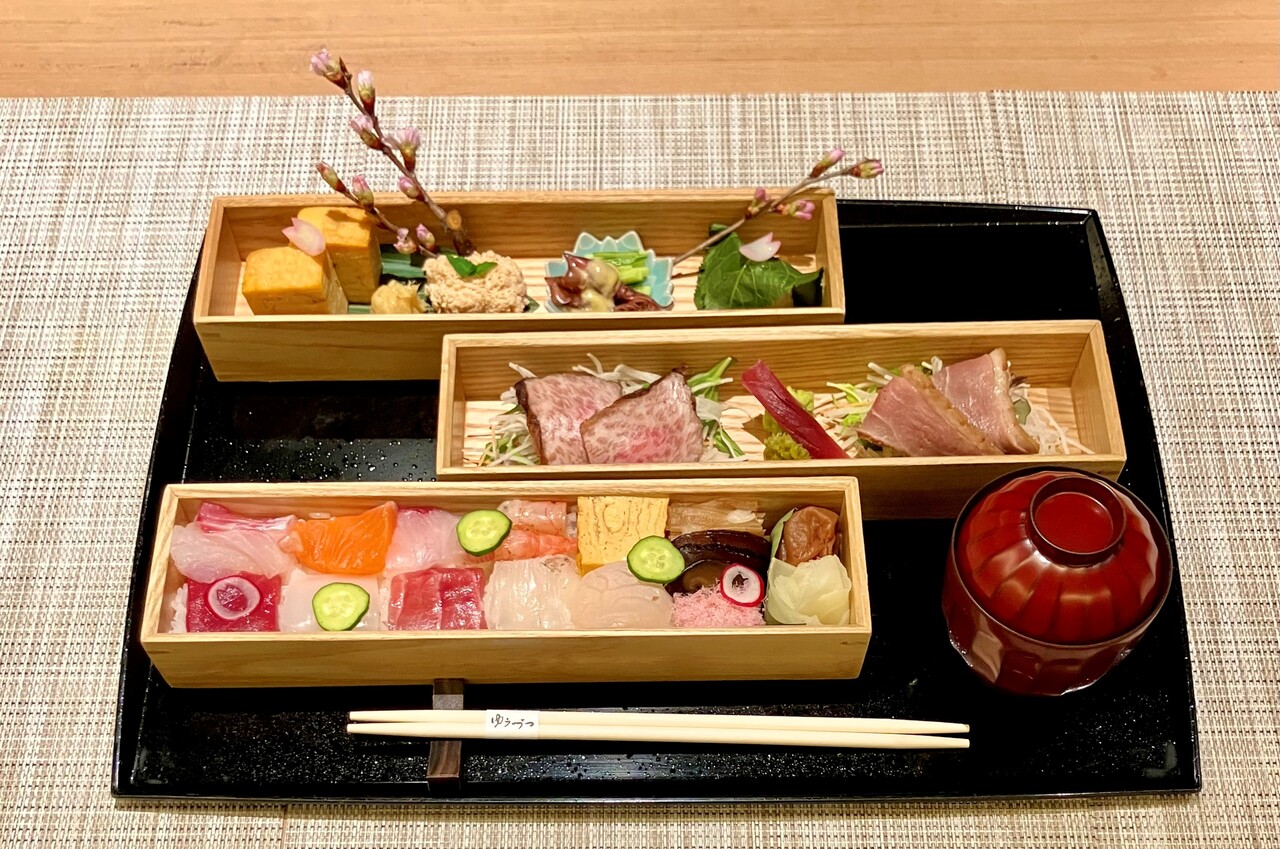 “ゆうづつ”料理長こだわりの一品を少量ずつお楽しみいただけるランチでございます。